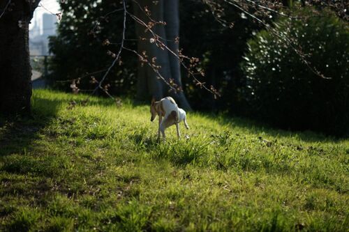 ふわぁ~っ zzzz ✿春やし眠いねぇ~ 眠くても、散歩の時間は楽しみやね! 暖かくなってきたのでメイン散歩の時間を真っ昼間から夕方にシフトチェンジ中 今日は久しぶりに写真班のUも一緒なのでいつもの様子を・・・と 思ったらレンズの中にゴミが入り込んで…